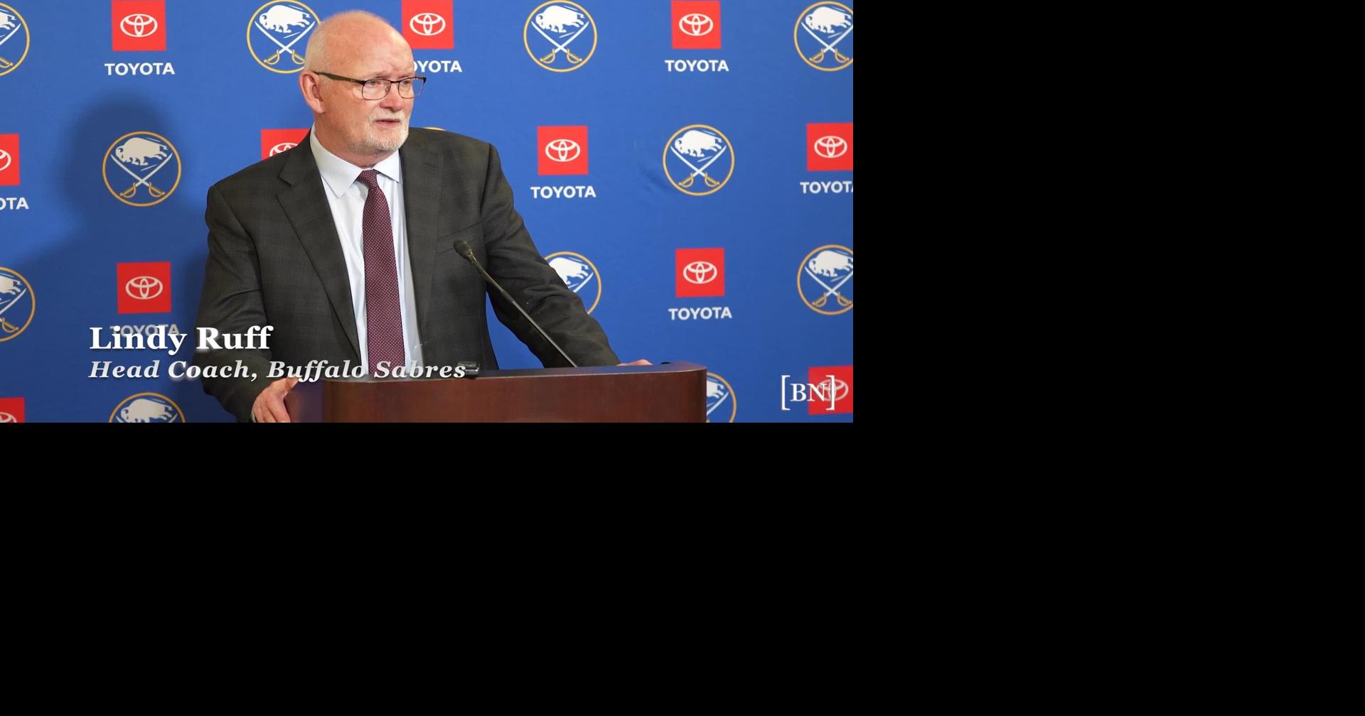 Buffalo Sabres coach Lindy Ruff speaks on the 3-2 win against the Vegas Golden Knights on March 3, 2026, in KeyBank Center.